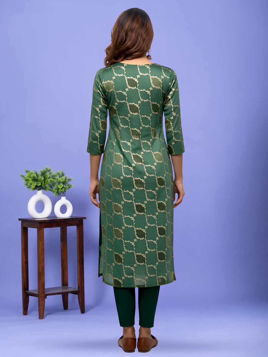 Celebrate heritage-inspired design in this elegant salwar suit set. The soft, breathable fabric ensures all-day ease, while the gold-toned vine print adds a sophisticated festive accent.