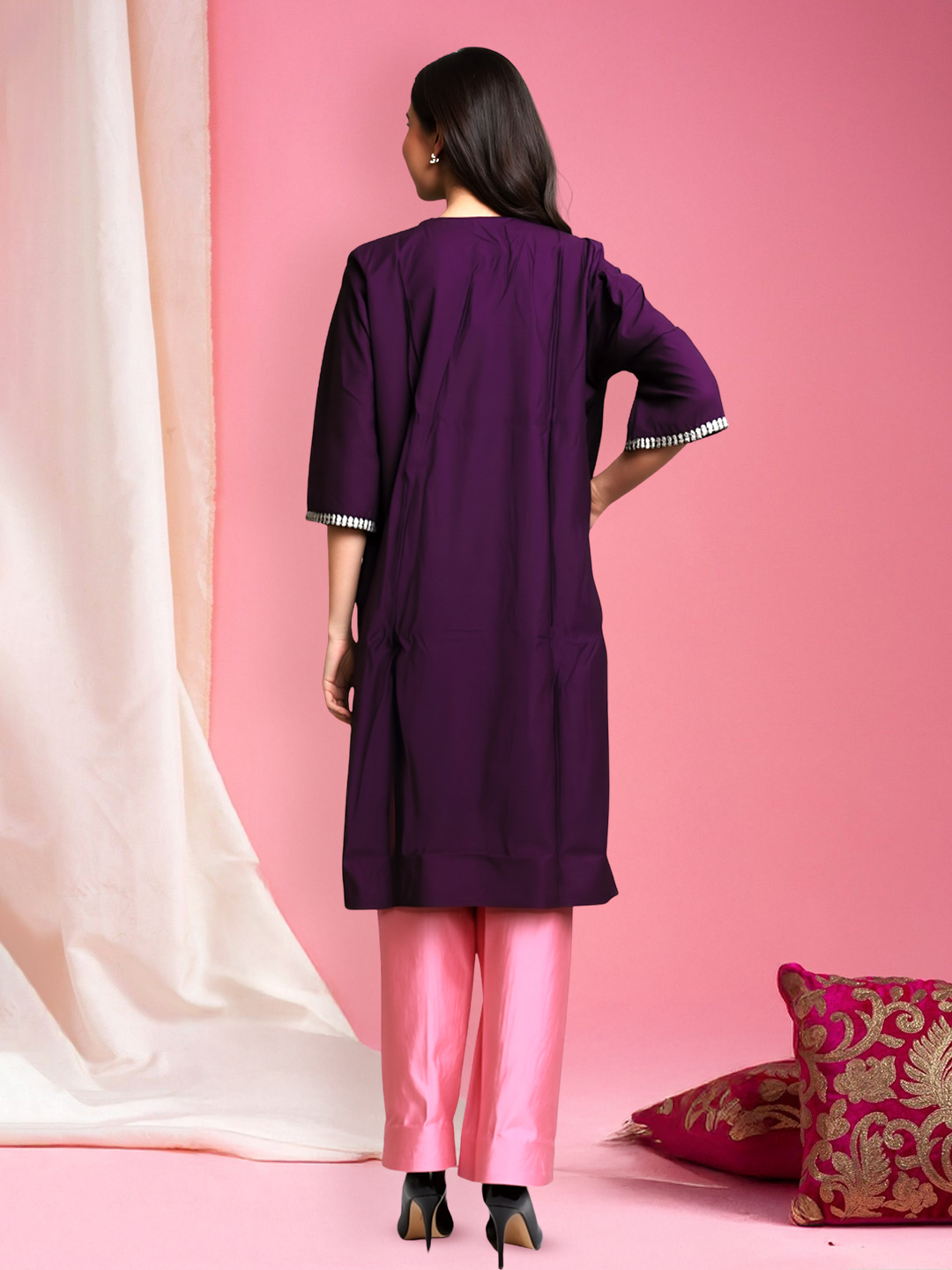 The beautifully embroidered round neckline elevates the kurta, creating a soft and feminine focal point that perfectly complements the intricate craftsmanship throughout the design.