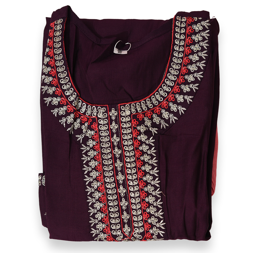 The kurta features exquisite embroidery around the neckline, with stunning detailing that adds depth and elegance. This carefully crafted design transforms your outfit into a statement of art.