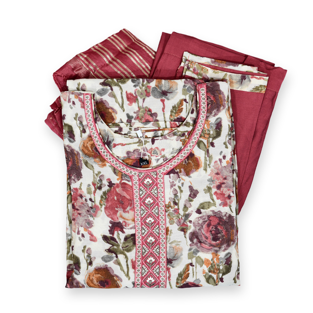 This Exquisite Floral Printed Salwar Suit Set brings together elegance and comfort in one stunning ensemble. The knee-length kurta features a delicate floral print that’s both timeless and trendy. Paired with matching straight pants and a coordinating dupatta, it creates a refined look, perfect for casual outings or semi-formal occasions. Crafted from soft, breathable fabric, this set ensures you stay stylish and comfortable all day long.
