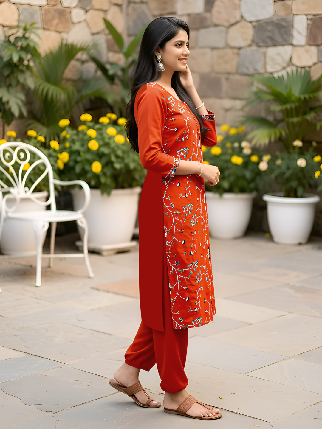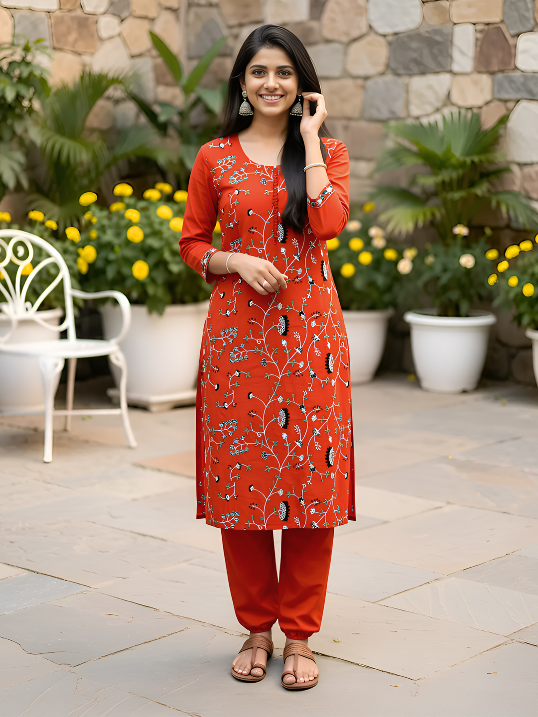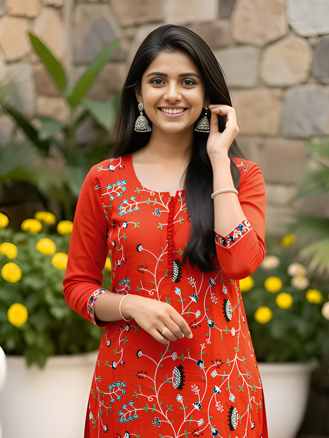 Beautiful vine-inspired floral embroidery adds a graceful ethnic touch to the kurta. The delicate design enhances the overall look, making it perfect for festive occasions, family gatherings, and traditional events.