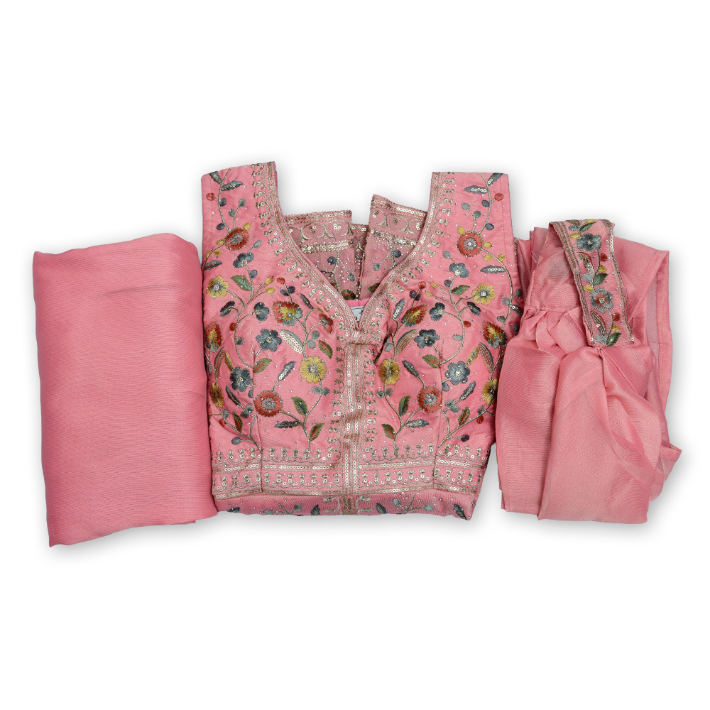 Elevate your ethnic wardrobe with this beautifully embroidered short kurta set. Featuring a shimmer fabric, floral detailing, and a modern V-neckline, it comes with relaxed sharara pants and a lightweight dupatta—ideal for weddings and festive celebrations.