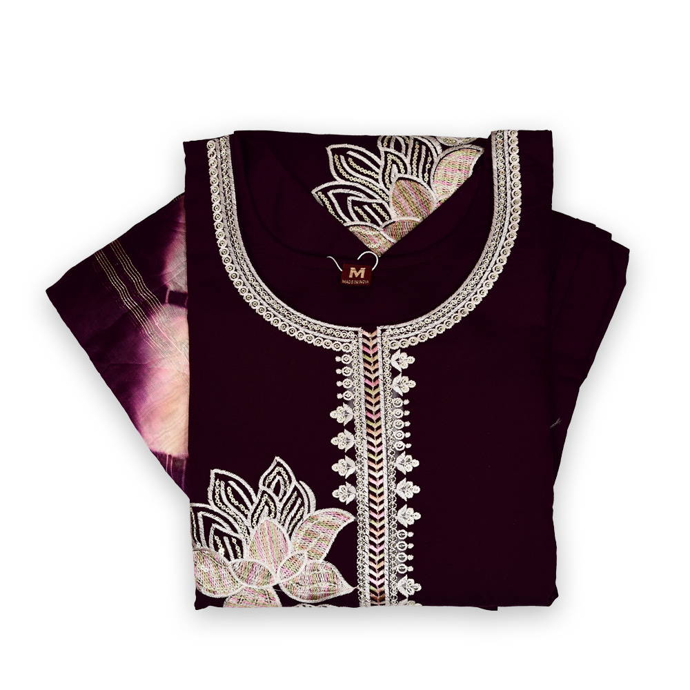 Elevate your ethnic wardrobe with this Floral Embroidery Kurta Set. The premium fabric gives a luxurious feel, complemented by intricate floral detailing. Complete with a straight pant and lightweight dupatta, it delivers effortless elegance for any occasion.