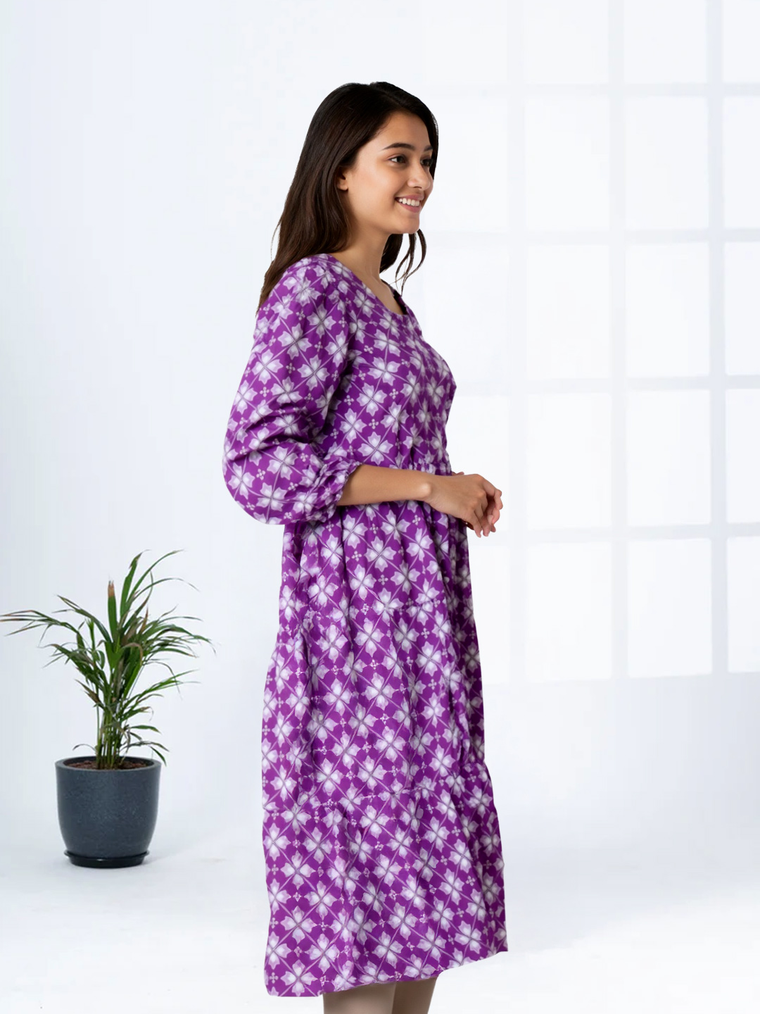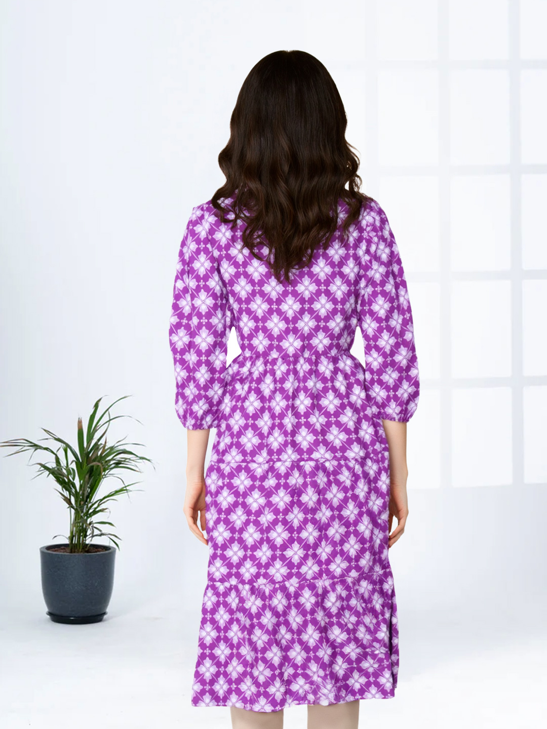 Enjoy a sleek silhouette with three-quarter sleeves, offering a graceful look and practical coverage. It's a design choice that suits every season and flatters every frame.