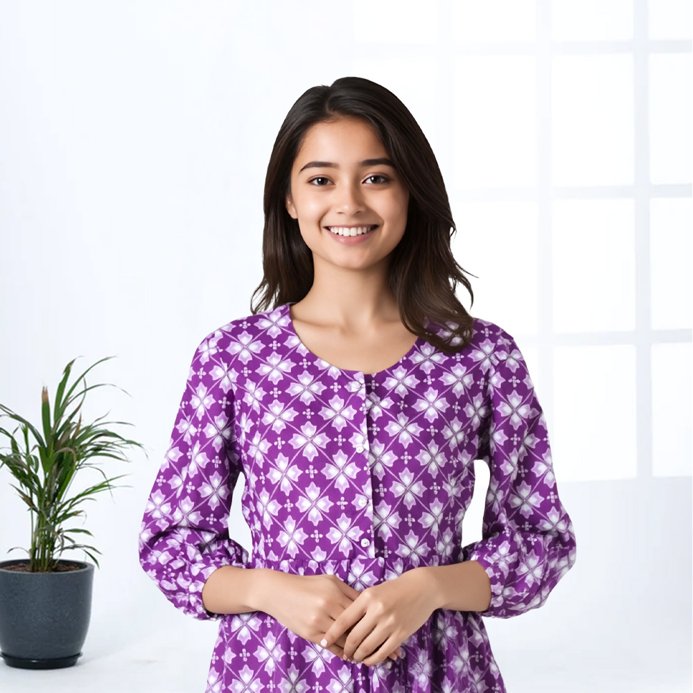 Turn heads with this Floral Geometric Printed Maxi Kurta—a beautiful blend of contemporary design and traditional styling. The floral geometric pattern adds a chic, modern edge while maintaining classic appeal.