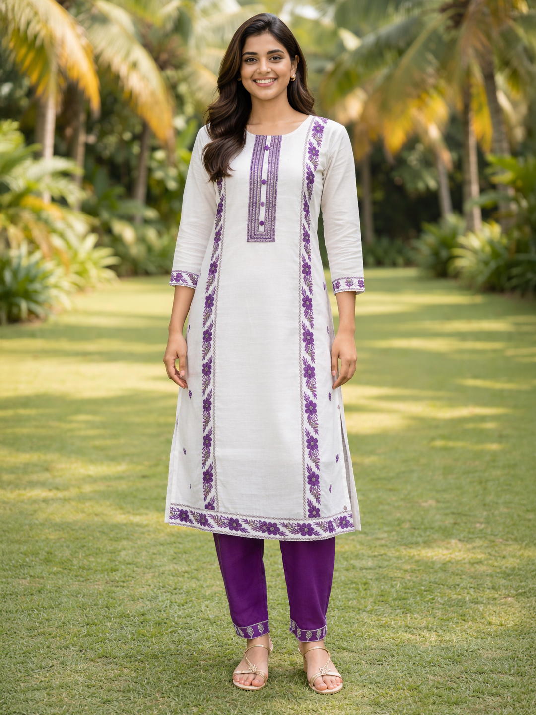 | Pant Type | Matching churidar pants with coordinated embroidery |