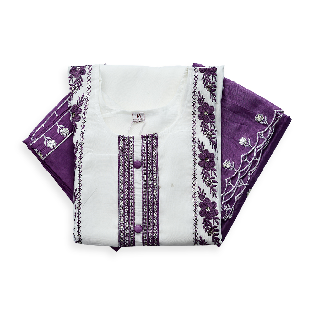 Celebrate subtle luxury with this embroidered salwar suit set. The fine detailing on the kurta adds a refined appeal, while the breathable fabric keeps you comfortable throughout the day. Complete with matching bottoms and a stylish dupatta, it’s a wardrobe essential for graceful dressing.