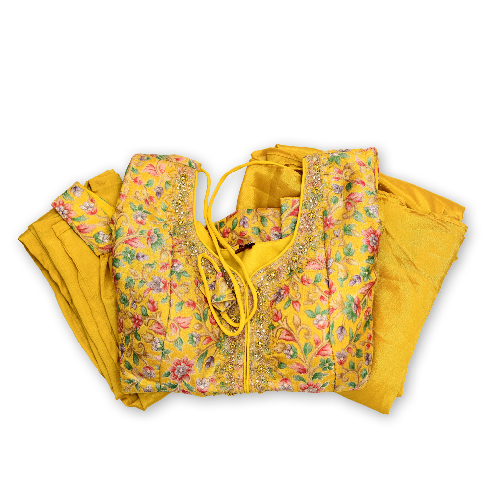 Add a refined ethnic look to your wardrobe with this floral printed kurti set. The embellished neckline enhances its festive appeal, while the sharara pants and dupatta complete the ensemble with grace. Designed for long wear, this breathable and stylish outfit is perfect for celebrations, cultural events, and everyday ethnic elegance.