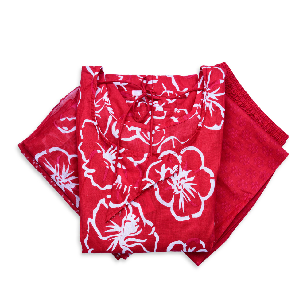 Celebrate tradition with a modern twist in this chic Anarkali ensemble. The floral design on soft, breathable fabric exudes elegance, while the matching red salwar enhances the kurta’s flow. A beautifully detailed dupatta completes the outfit, making it perfect for festive occasions or casual gatherings.