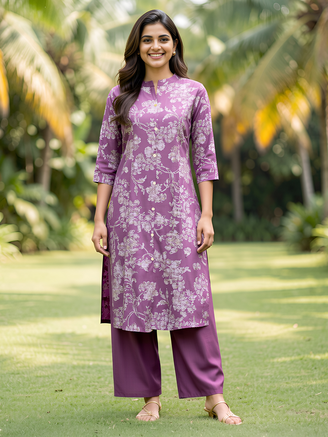 Step into effortless style with this Floral Printed Ethnic Straight-Cut Kurta with Pant Set. The delicate floral design adds a refreshing and feminine charm, making it perfect for everyday wear, casual outings, or small gatherings. Designed to combine comfort and elegance, this outfit enhances your ethnic wardrobe with a modern touch.