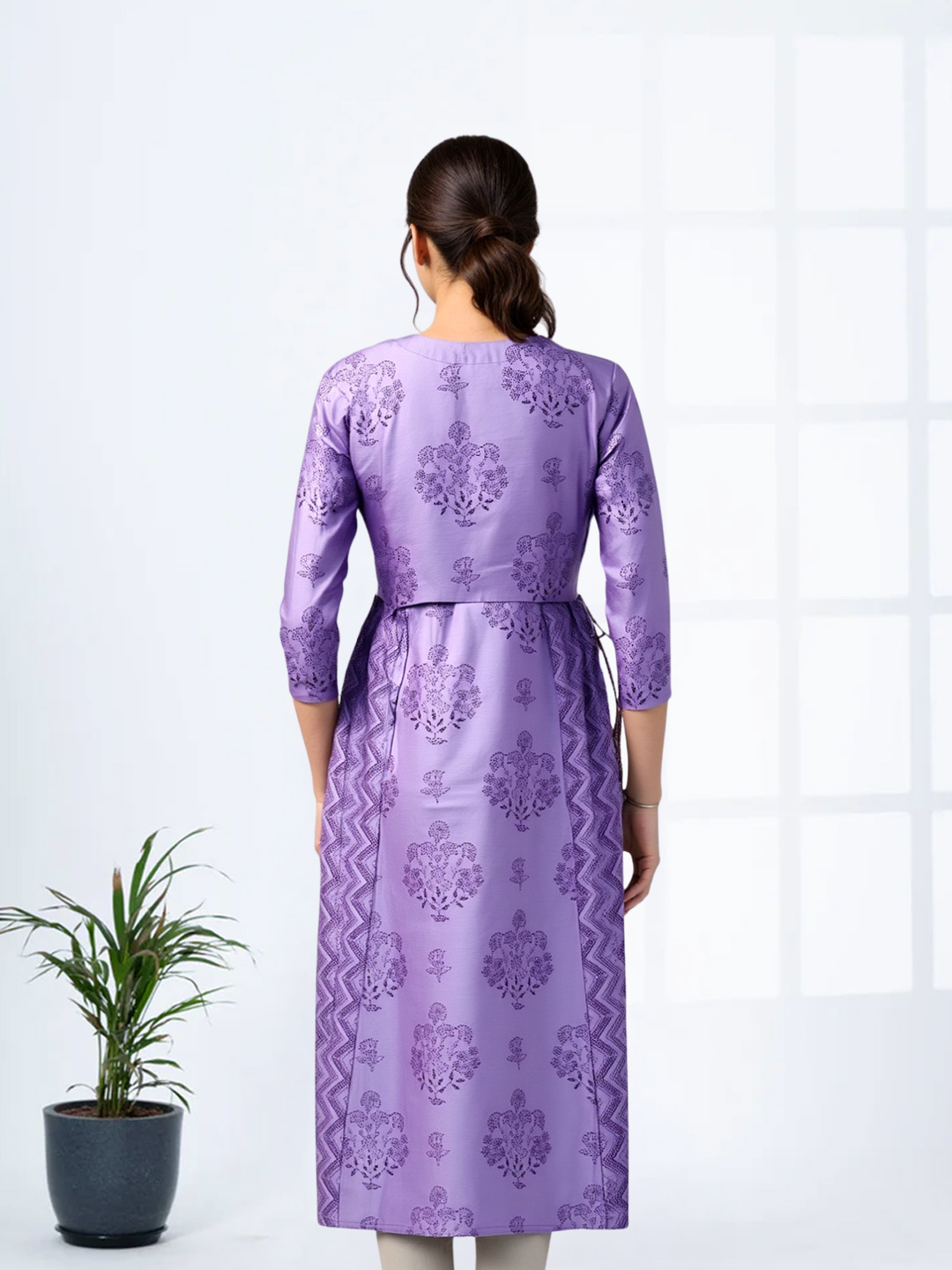 Whether paired with churidars, palazzos, or leggings, this Floral Printed Anarkali Kurta adapts effortlessly to different styling choices. Dress it up with statement jewelry for festivities or keep it minimal for a graceful everyday ethnic look.