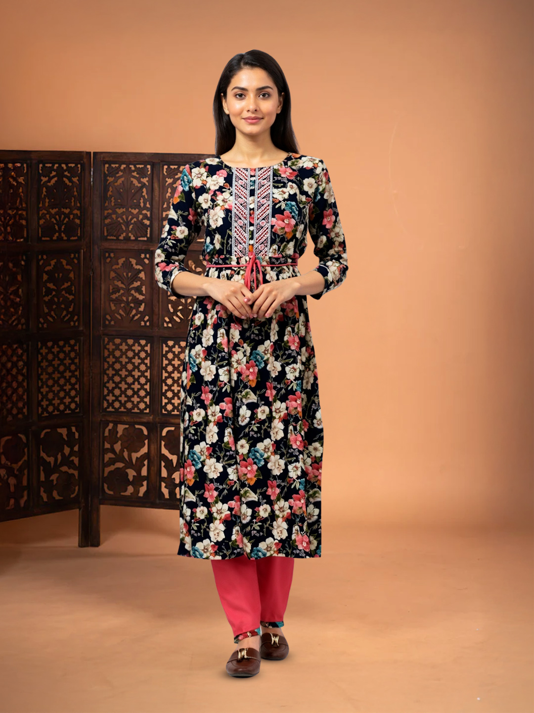 | Pant Type | Matching churidar pants with coordinated embroidery |