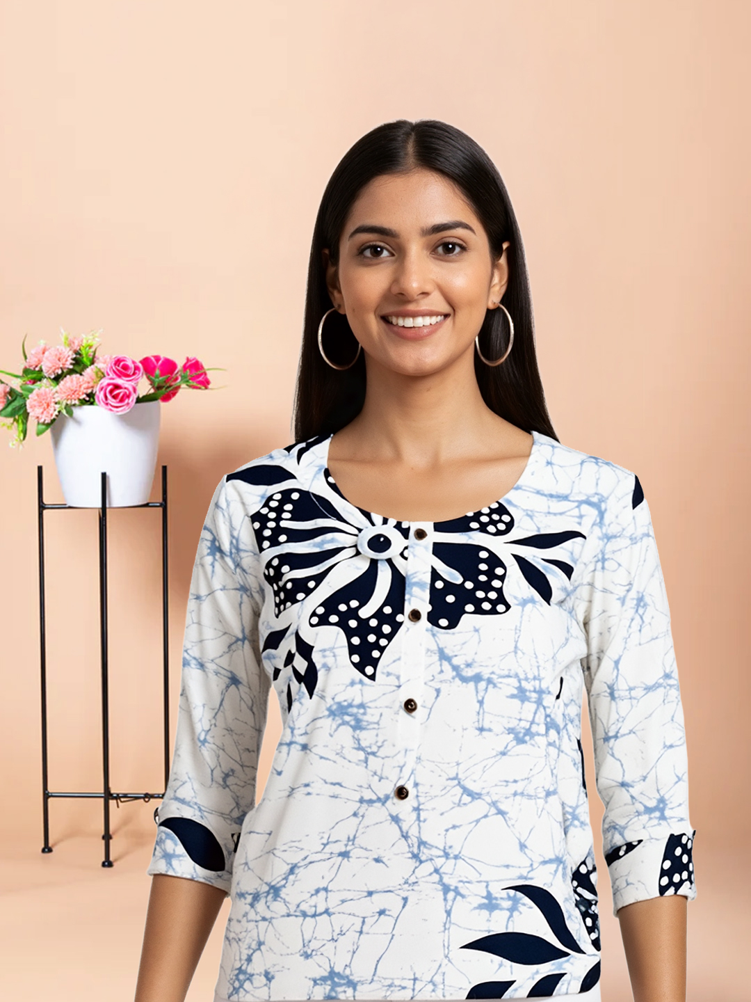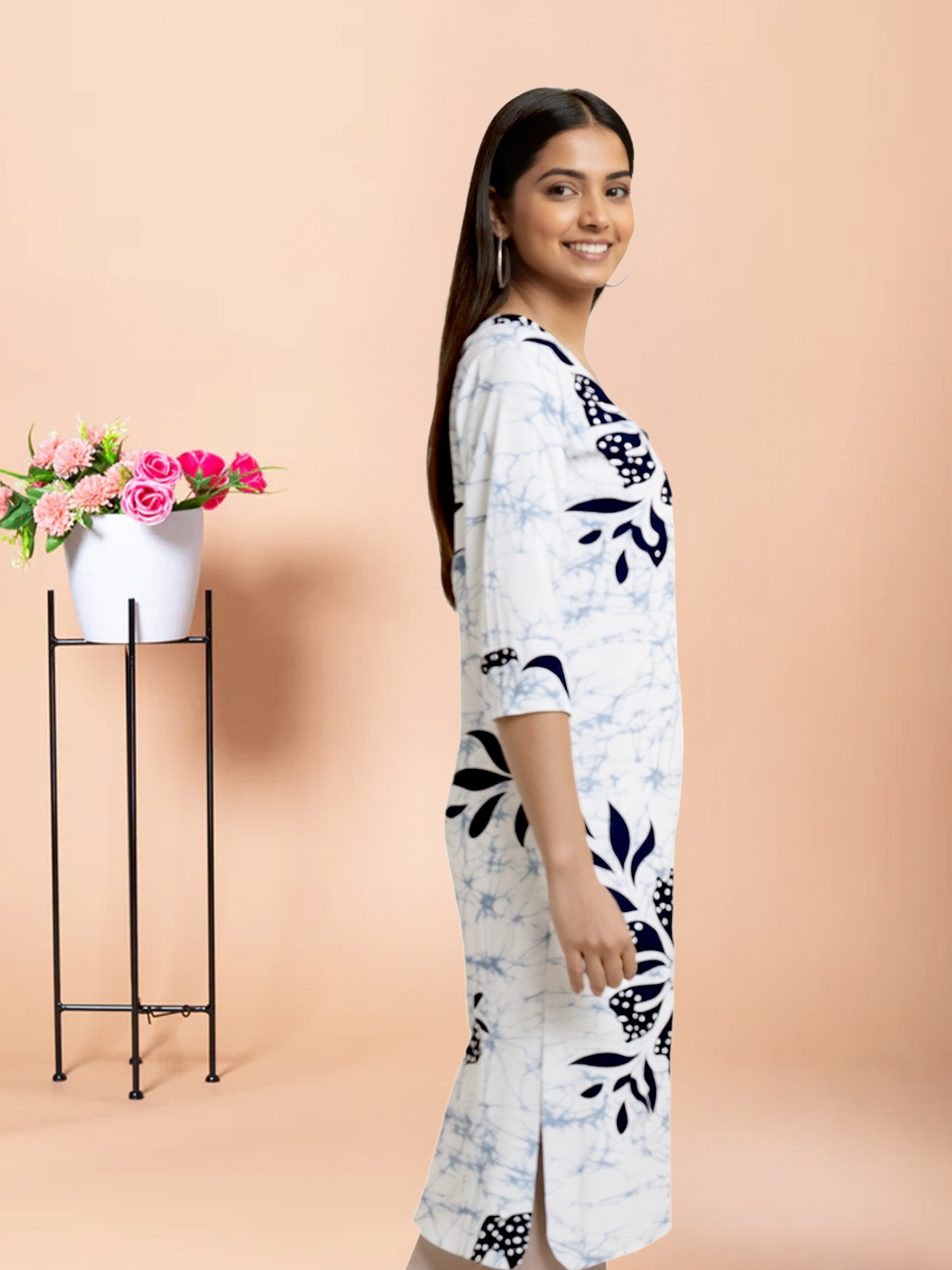 This Floral Printed Straight Kurta combines the best of classic style and modern comfort. The delicate floral print creates an elegant and refreshing look, while the premium fabric offers a luxurious feel against the skin. With a modern fit, 3/4 sleeves, and a button-down front, this kurta is designed to offer both style and comfort—perfect for any occasion where you want to look effortlessly chic.
