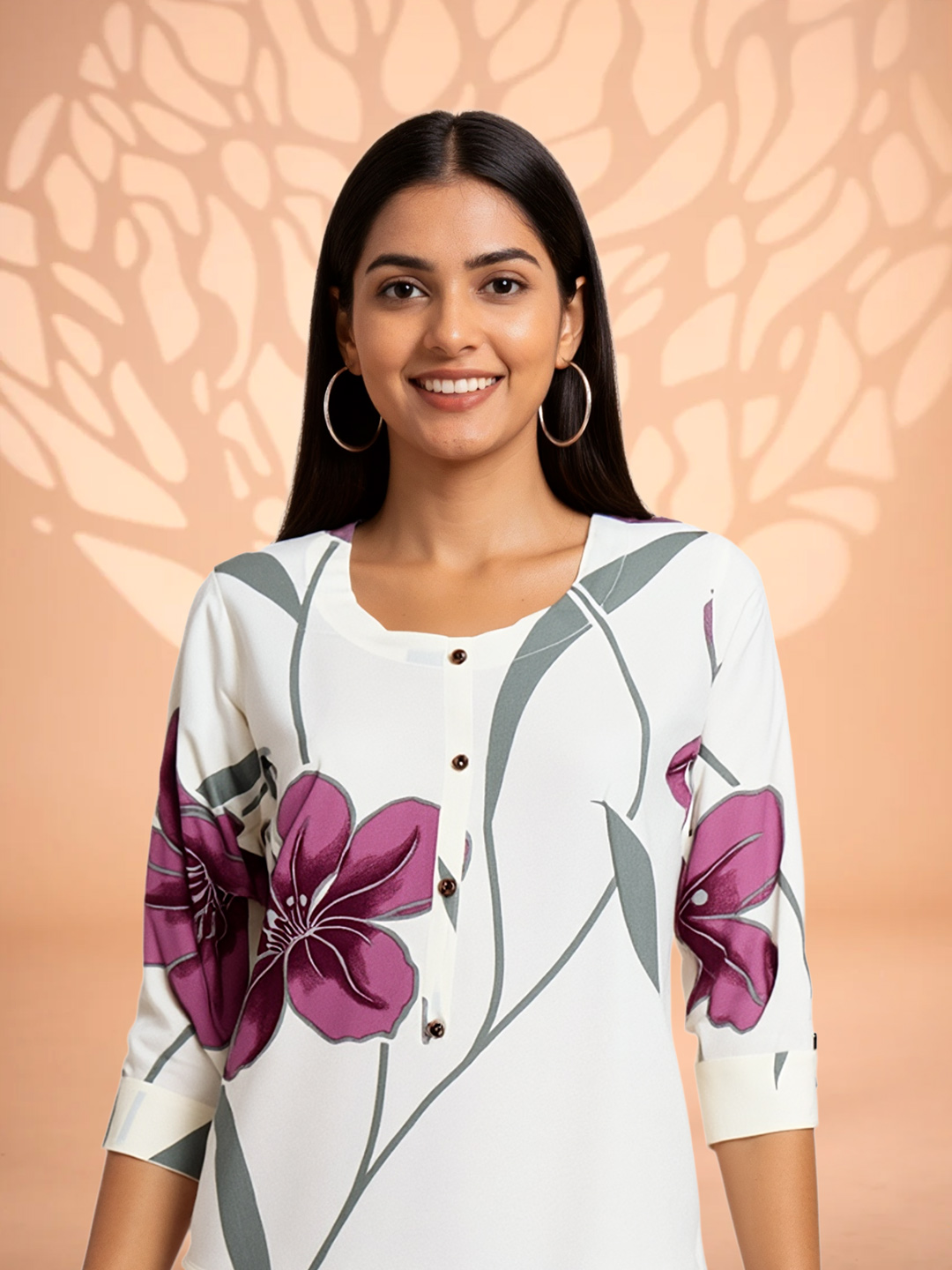 This Floral Printed Round Neckline Kurta is a perfect fusion of style and comfort. The premium fabric enhances the vibrant floral print, while the 3/4 sleeves provide a sophisticated look. Whether you're at work, a weekend gathering, or a festive occasion, this kurta ensures you stand out effortlessly.
