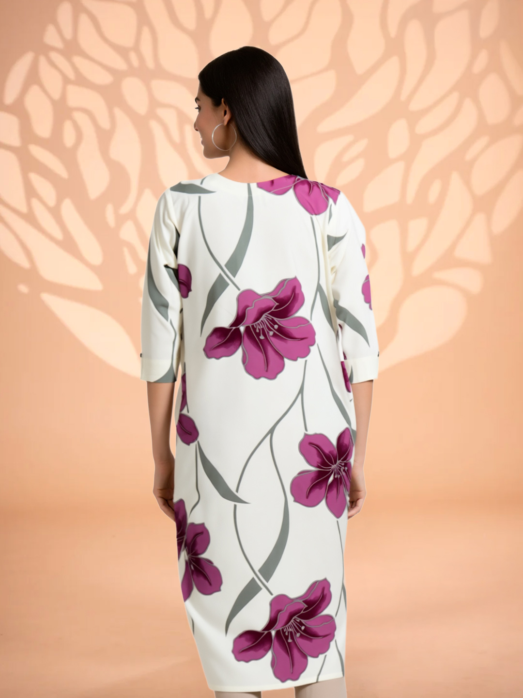 This Floral Printed Round Neckline Kurta offers a timeless blend of delicate floral prints and luxurious comfort. Made from premium fabric, it drapes beautifully, ensuring both style and ease. The 3/4 sleeves and classic round neckline make it the perfect choice for any occasion, from casual outings to semi-formal events.