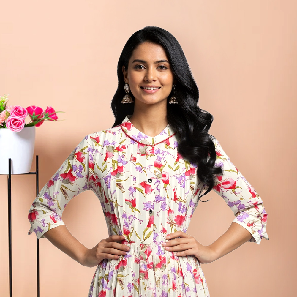 Step into elegance with this Floral Printed Kurta designed to make you feel effortlessly beautiful. The exquisite floral print brings out your feminine charm, while the stylish collar adds a modern flair to your ethnic look.