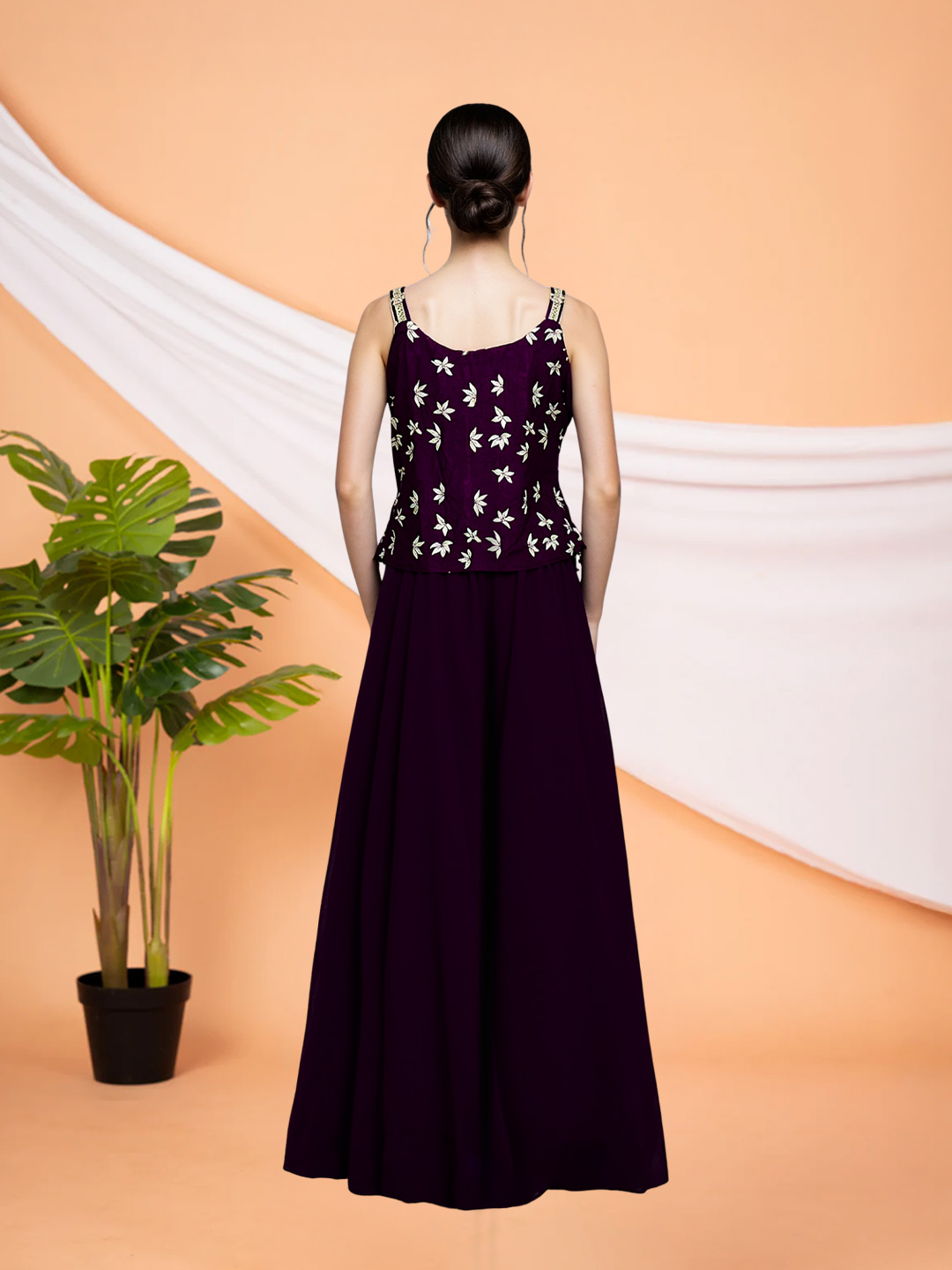 Designed for celebrations that last all day, this sharara set features a soft, flowy fabric that drapes beautifully. Intricate floral thread embroidery enhanced with mirror work highlights the short top, creating a striking focal point. The matching dupatta completes the look with refined elegance.