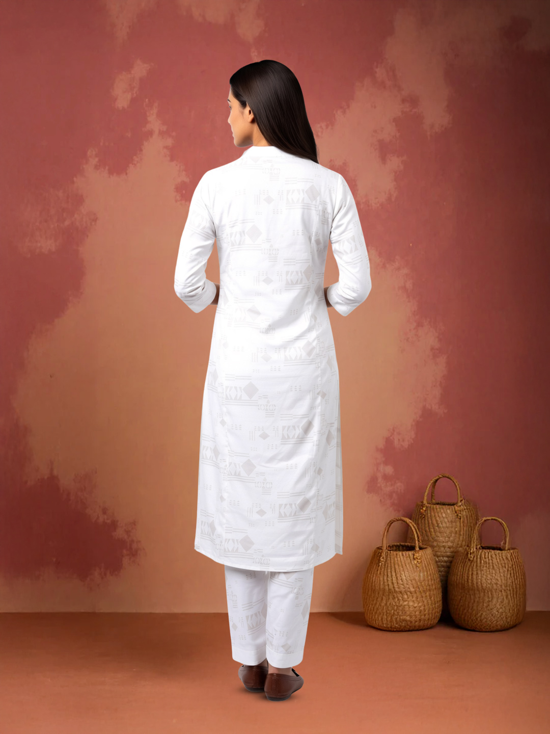 This Geometric Printed Kurta with Pant Set blends tailored structure with relaxed comfort. The straight-cut silhouette provides a flattering fall, and the notch neckline lends a smart, modern touch. The breathable fabric makes it perfect for long hours at work or casual outings. Paired with coordinated straight-fit pants, this set ensures you look put-together with minimal effort.