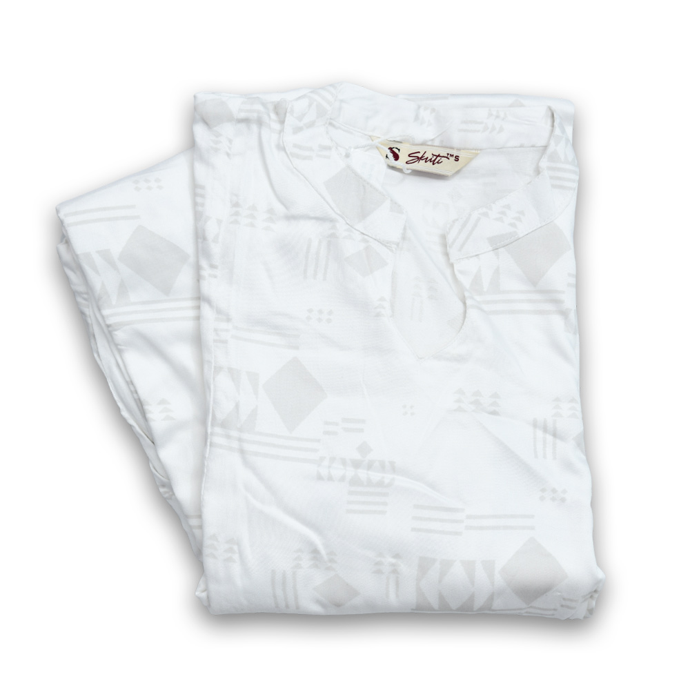 Upgrade your everyday ethnic look with this Geometric Printed Notch Neckline Kurta with Pant Set. Featuring a subtle all-over geometric print, this straight-cut, calf-length kurta offers a refined and contemporary appeal. The stylish notch neckline adds a modern finish, while the three-quarter sleeves enhance its elegant silhouette. Crafted from lightweight and breathable fabric, it ensures all-day comfort. Paired with matching straight-fit printed pants, this set delivers a perfectly coordinated and polished look.