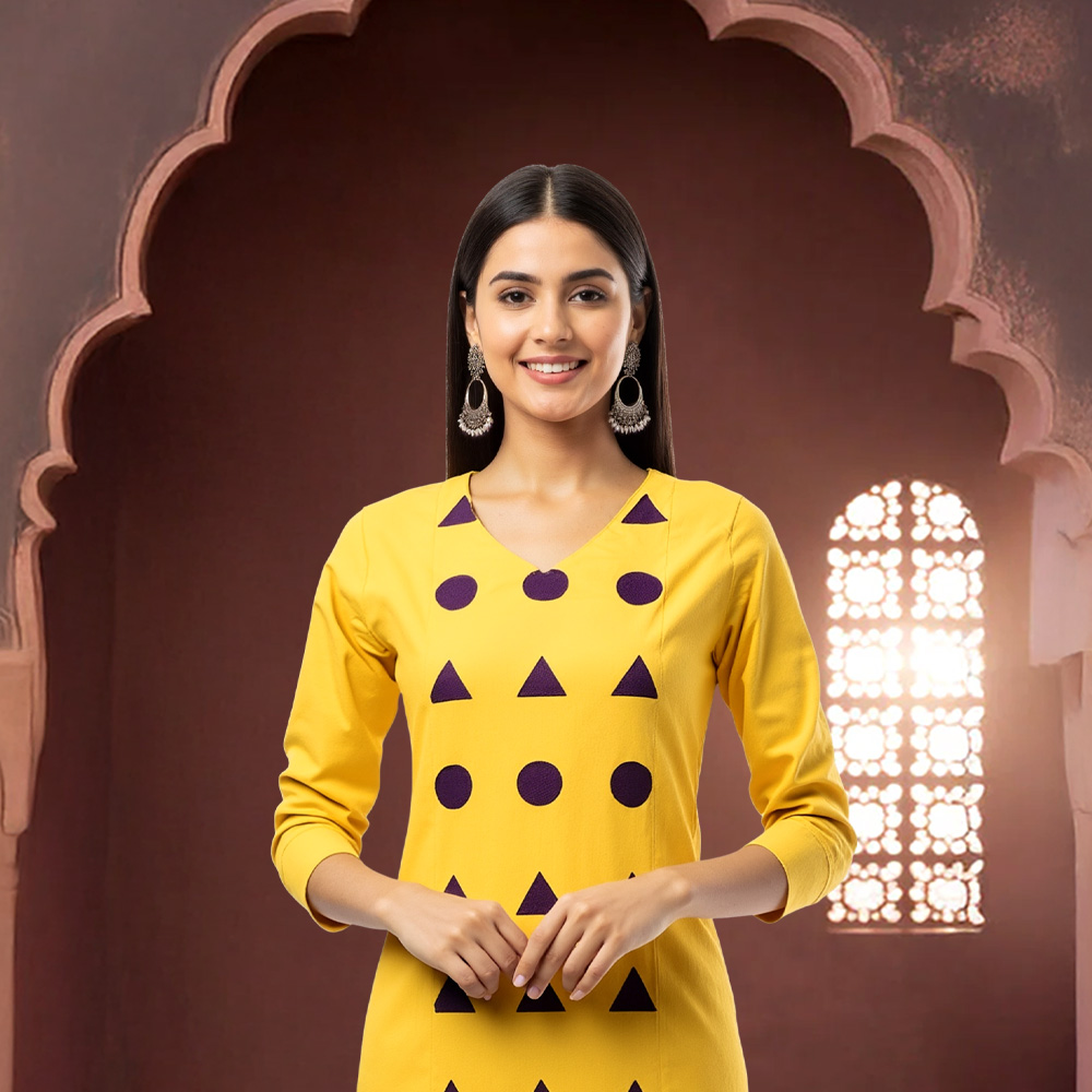 Elevate your everyday wardrobe with this effortlessly stylish kurta. Its breathable, premium fabric ensures comfort all day, and the geometric print adds a trendy twist. Pair with leggings or palazzos for an instant chic look.