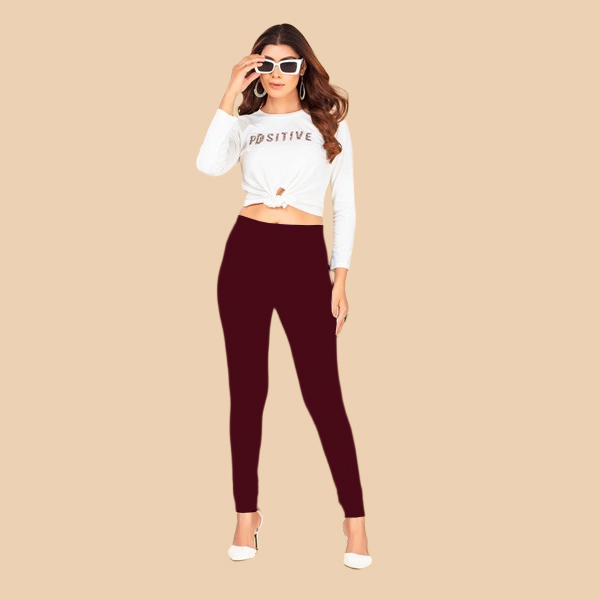 From office to family gatherings, these leggings adapt. Match with a simple white Kurti and jhumkas for daytime grace, or add a sequin top and heels for an evening look — maroon plays well with beige, gold, black, and jewel tones.