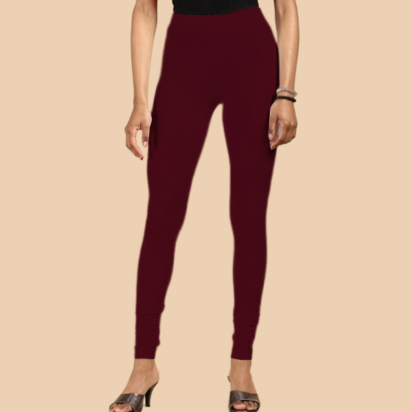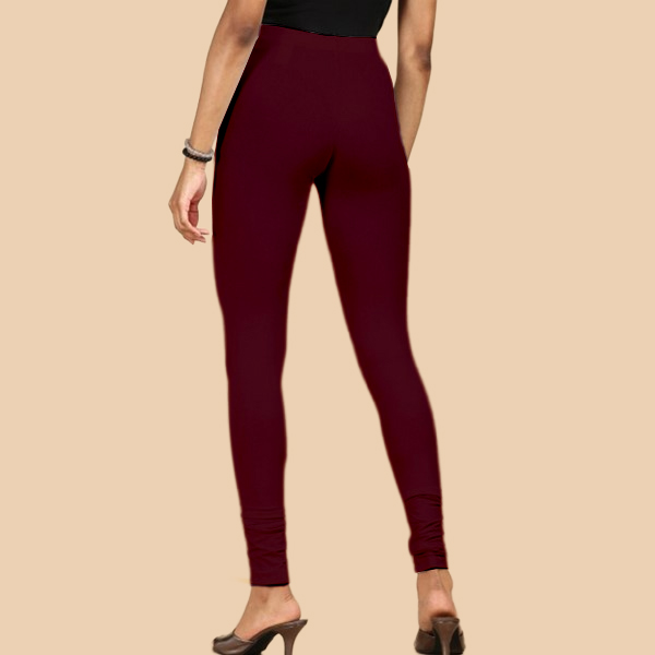 Wrap your legs in deep, regal maroon that speaks of elegance and confidence. These churidar leggings bring a bold touch to your ethnic looks – perfect with golden embroidery or neutral Kurtis for a striking contrast.