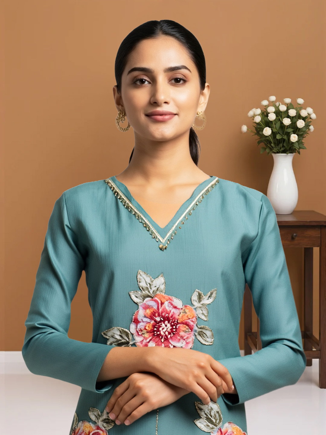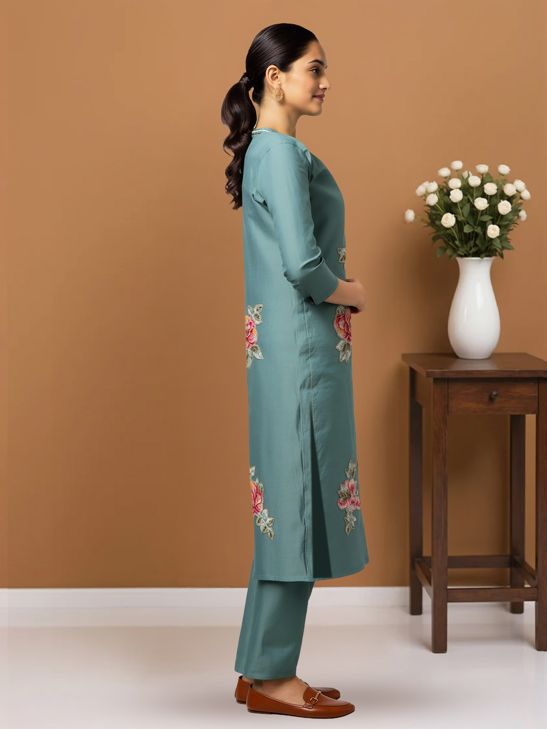 Graceful Floral Detailing with Premium Fabric Finish