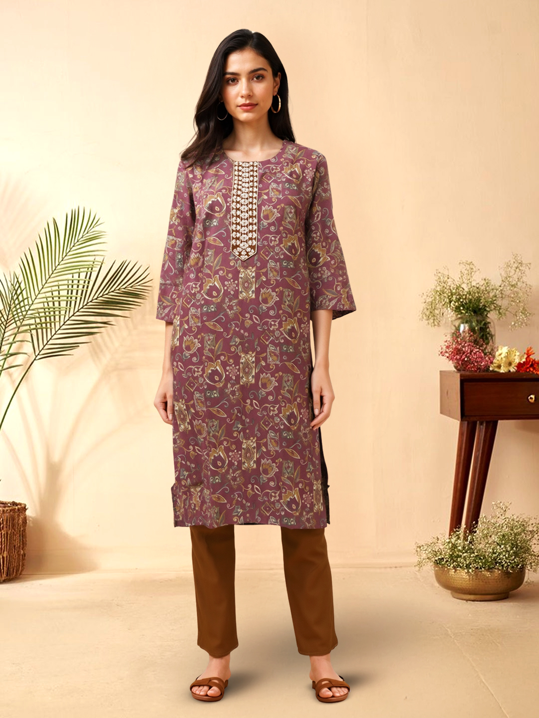 With three-quarter sleeves, this kurta strikes the perfect balance between comfort and style — making it suitable for work, weekends, or gatherings.