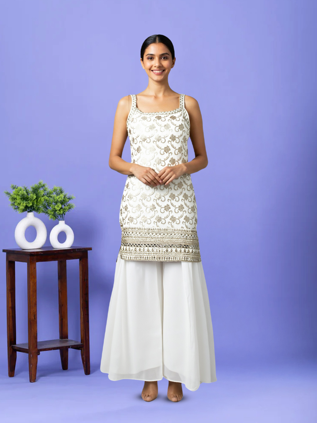 | Set includes | Kurta with Sharara & Dupatta |