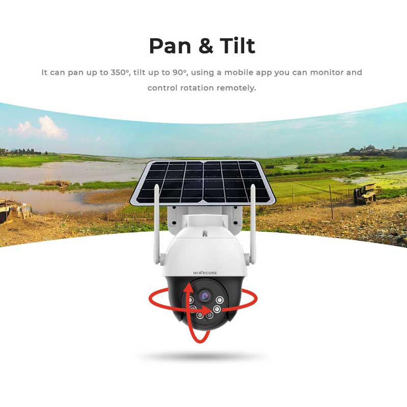 It can pan up to 350°, tilt up to 90°, using a mobile app you can monitor and control rotation remotely.