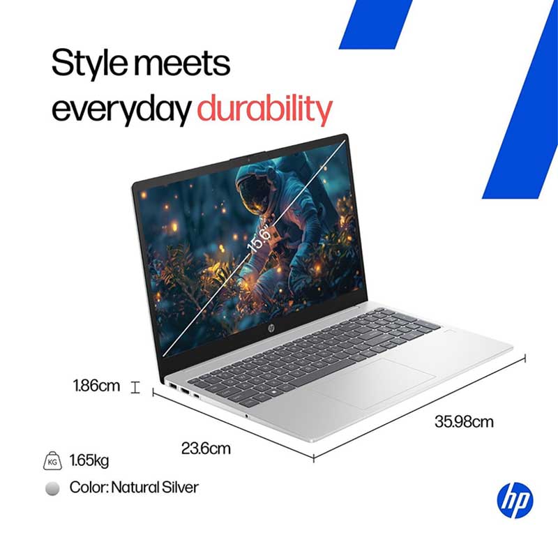 At just 1.65 kg, this slim and lightweight laptop is perfect for students, professionals, or anyone on the go. Whether you’re working in a café or commuting to class, the stylish Natural Silver finish ensures you look as good as you feel.