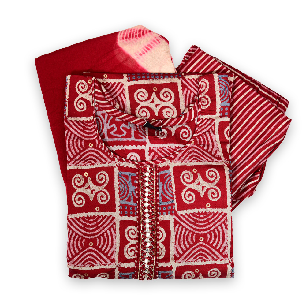 Celebrate timeless craftsmanship with this Intricate Block Print Kurta Set. Designed for women who appreciate both style and cultural heritage, this set features detailed block prints that tell a story of traditional artistry. The premium quality fabric ensures breathability and comfort, while the matching straight pant and lightweight dupatta offer the perfect balance of ease and elegance. With its flattering fit and subtle elegance, this outfit is a perfect addition to your festive or daily wardrobe.