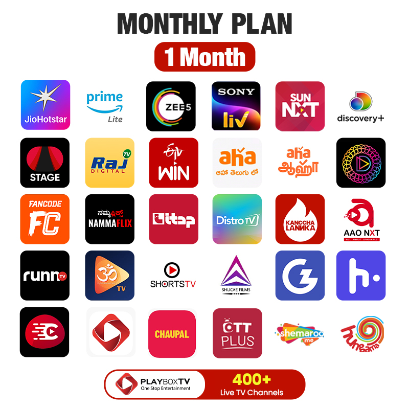 Description Description OTT PlatformsZEE5 SonyLIVShemaroo Hungama SunNXT Discovery PlusSTAGERaj Digital TV ETV WINahaaha TamilDolby PlayFanCodeNammaFlixLittlDistroTVKanccha LannkaAAO NXTRunn TVOm TVShortsTVShuca FilmsGZHubhopperPlayboxTVChaupalOTT PlusJioHotstarPrime Lite