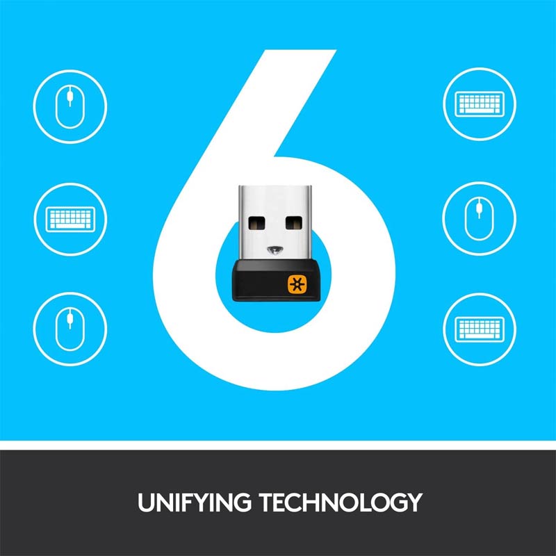 Just plug the tiny Unifying receiver into a USB port and you’re ready to go. Plus, you can use the keyboard receiver to wirelessly connect up to six Unifying devices to your computer.
