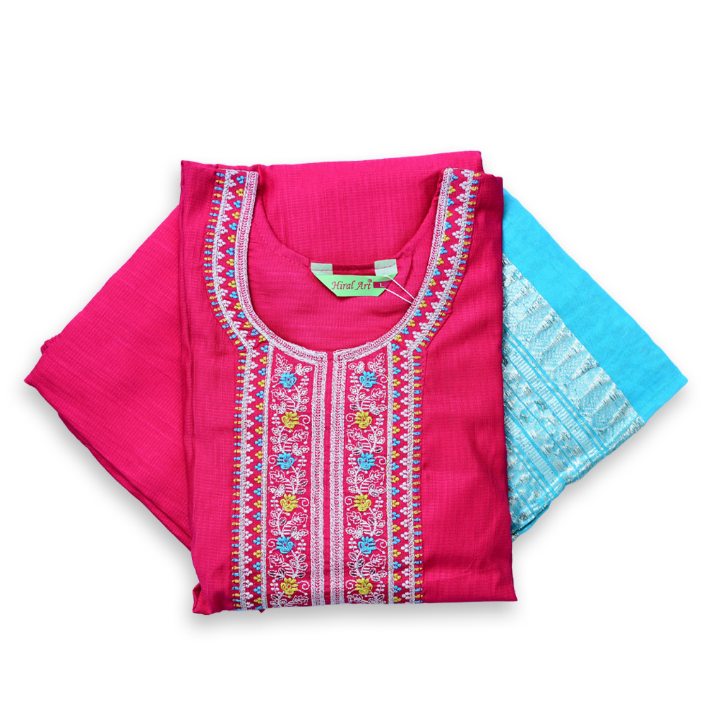 This 3-piece salwar suit set celebrates the beauty of multicolor embroidery with intricate thread work that enhances its visual appeal. The straight-cut kurta offers a flattering fit, while the breathable fabric keeps you comfortable throughout the day. Complemented by a soft dupatta with delicate woven textures, this ensemble strikes the perfect balance between vibrant style and subtle elegance.