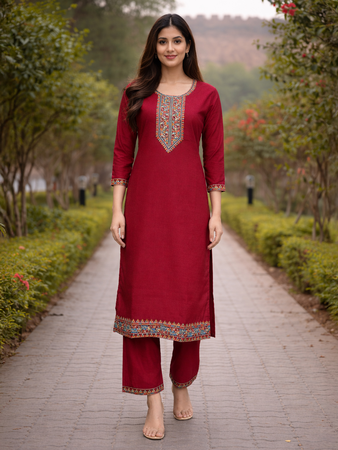 | Set includes | Kurta with matching pants & Dupatta |