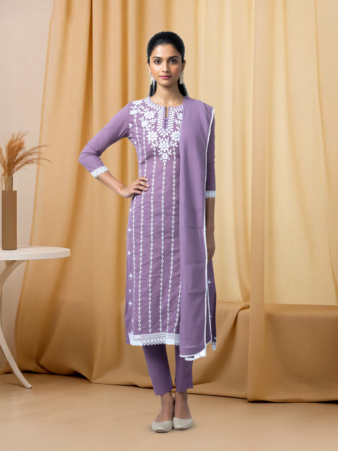 Premium Floral Embroidered Suit with Coordinated Dupatta