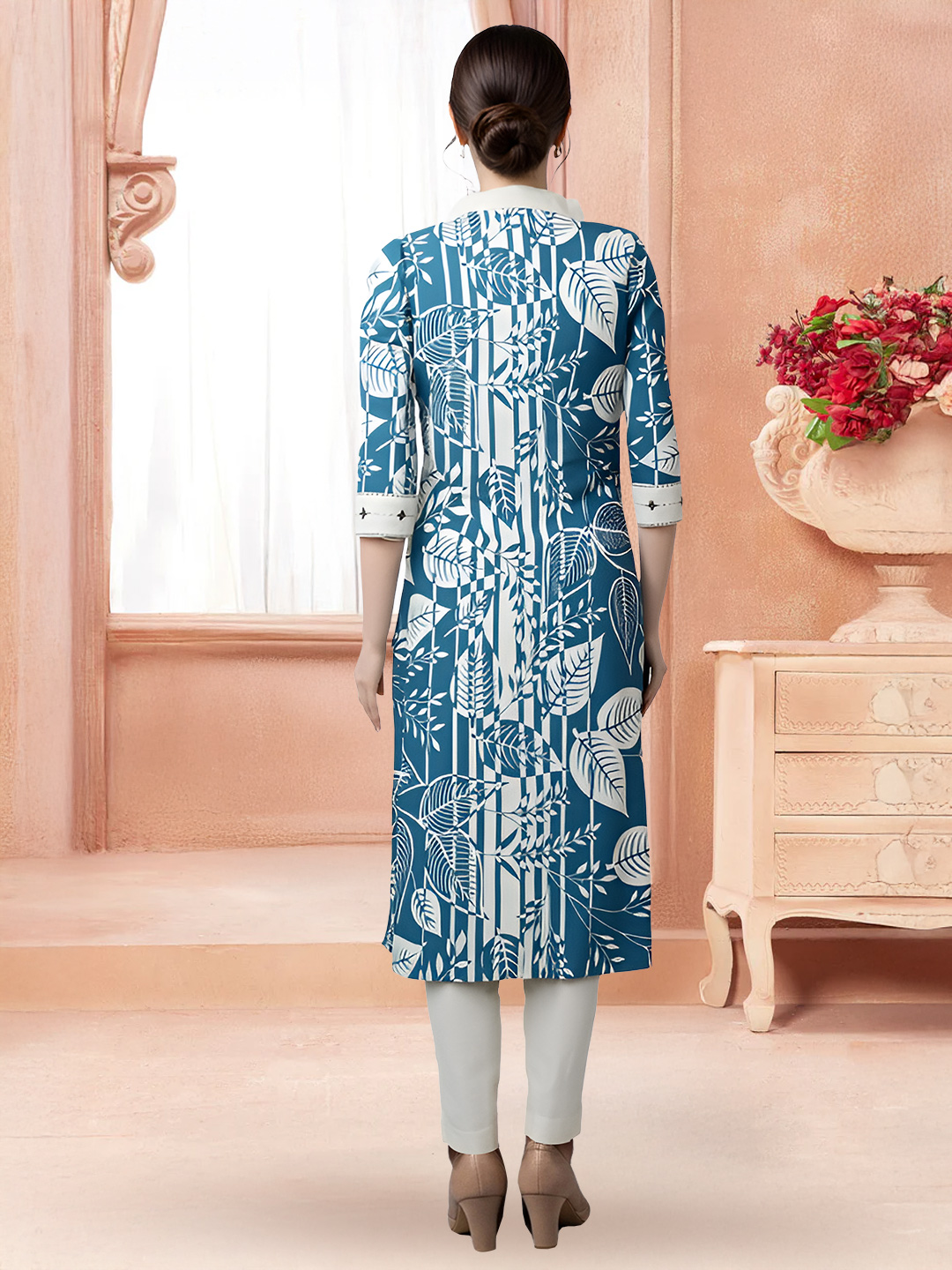 The kurta features an elegant V-neckline highlighted with contrast detailing that adds a refined and polished touch. This design enhances the overall look, giving the outfit a modern yet graceful appeal.