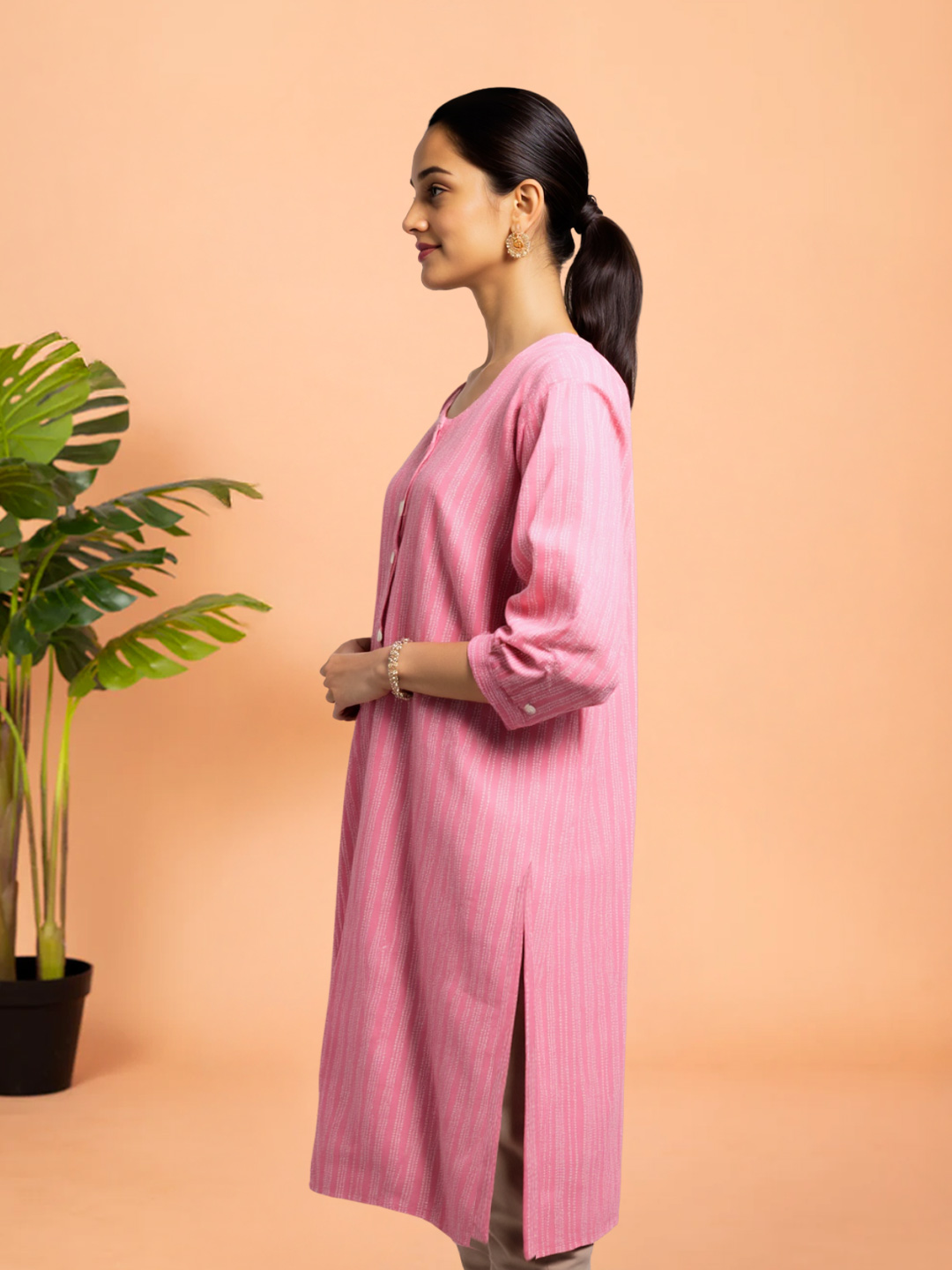 Crafted for everyday ease, this kurta features a classic round neckline paired with premium-quality fabric for maximum comfort. Its relaxed fit makes it ideal for long days, whether at home or on the go.