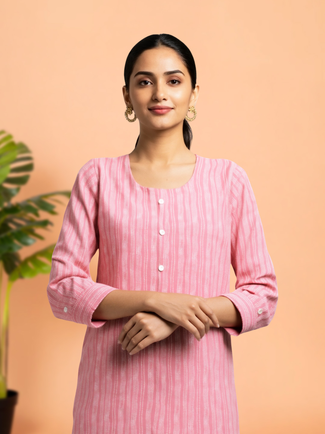 Designed for daily wear, this kurta features a classic round neck and a soft, breathable premium fabric. Its comfortable fit makes it your ideal go-to outfit for work, errands, or casual outings.