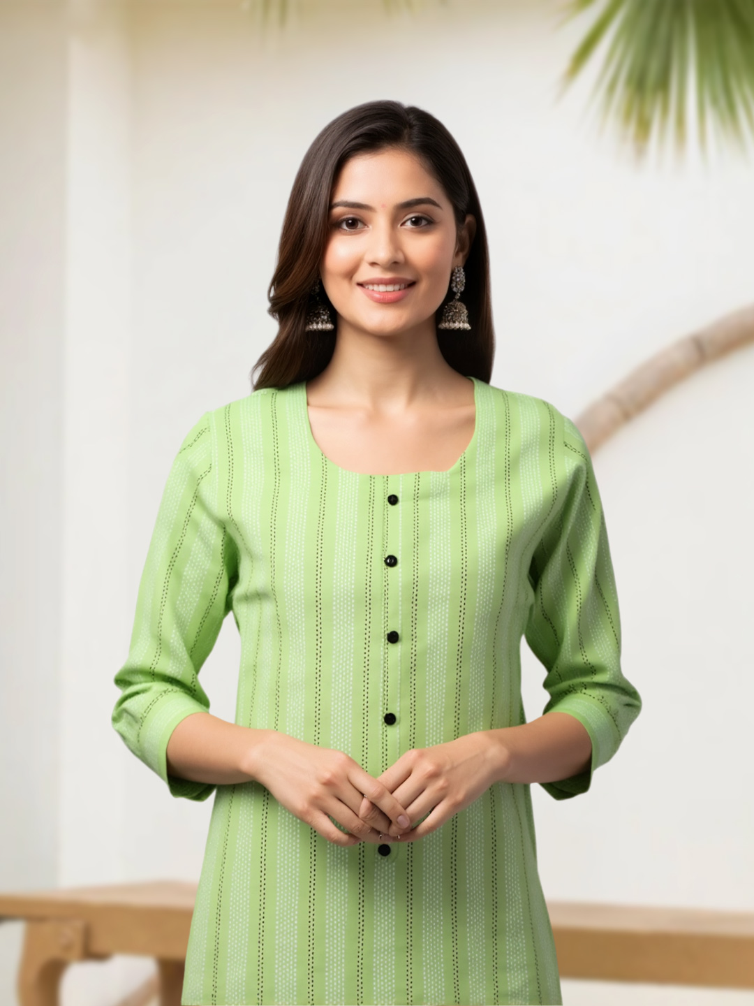 Designed for modern women who value comfort without compromising on style, this kurta features a soft premium fabric and a flattering straight silhouette. The round neck adds a timeless touch, while the three-quarter sleeves make it perfect for all-day wear.