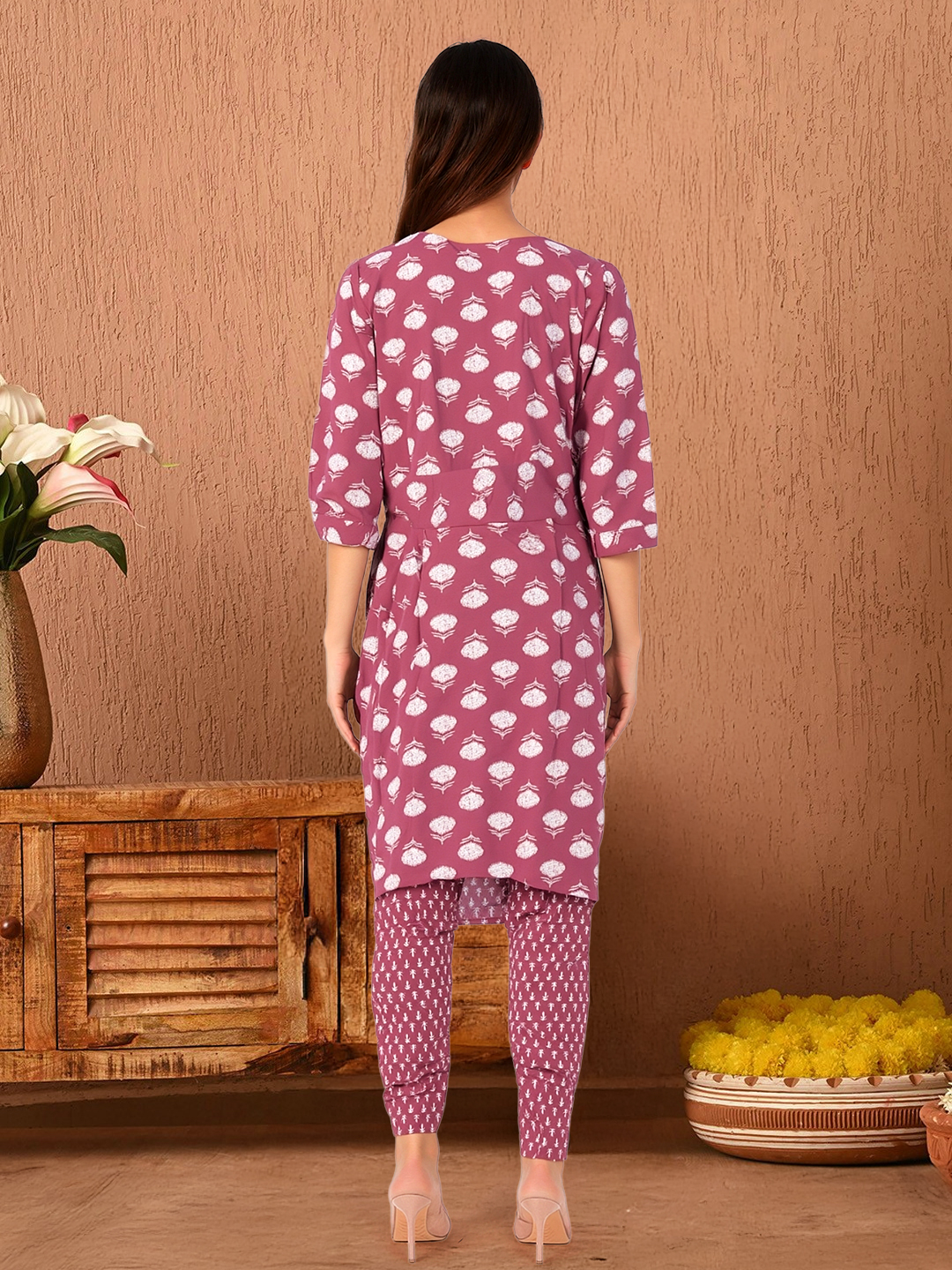 Clean lines and a structured straight-fit kurta paired with comfortable printed pants give a polished yet playful vibe—ideal for casual outings or informal gatherings.