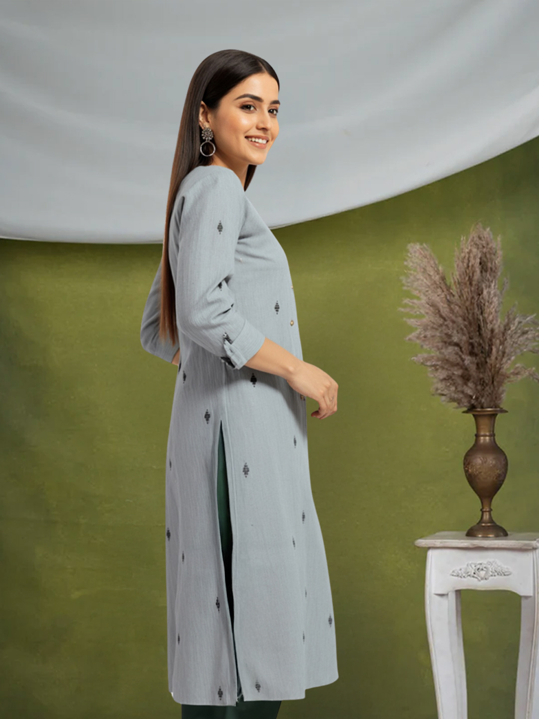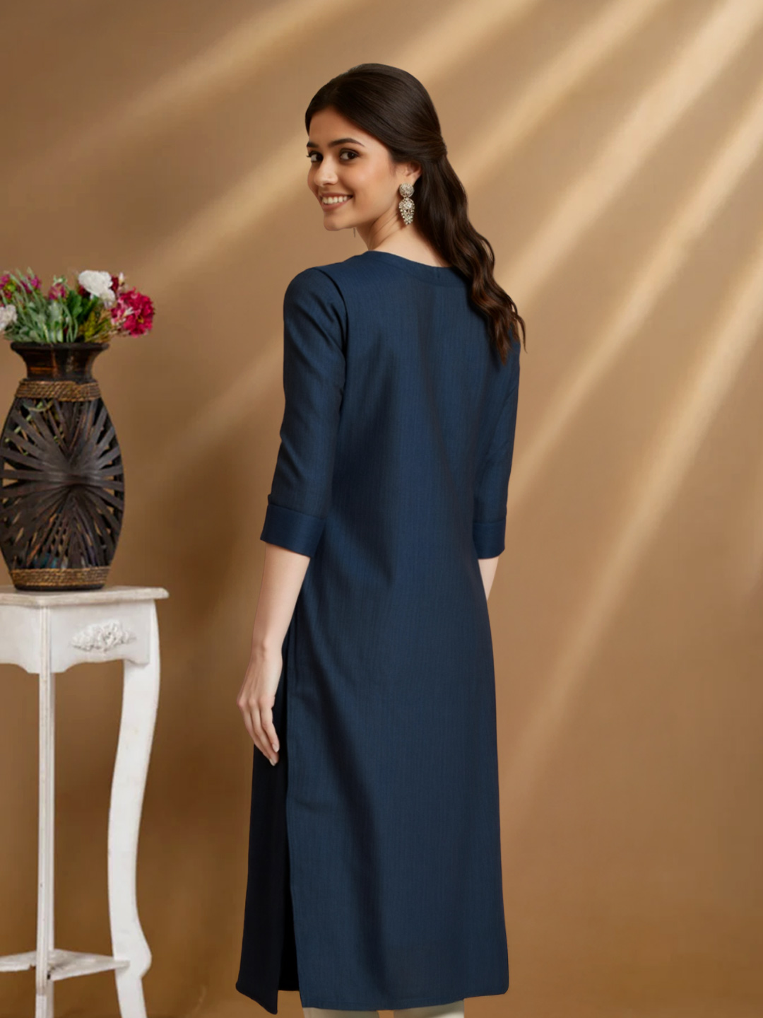 Elevate your everyday style with this Self Texture Straight Kurta featuring delicate minimal embroidery. The subtle texture adds depth and dimension, while the understated embroidery lends a touch of elegance without overpowering the look. Perfect for workdays or casual outings, this kurta blends comfort and class effortlessly.