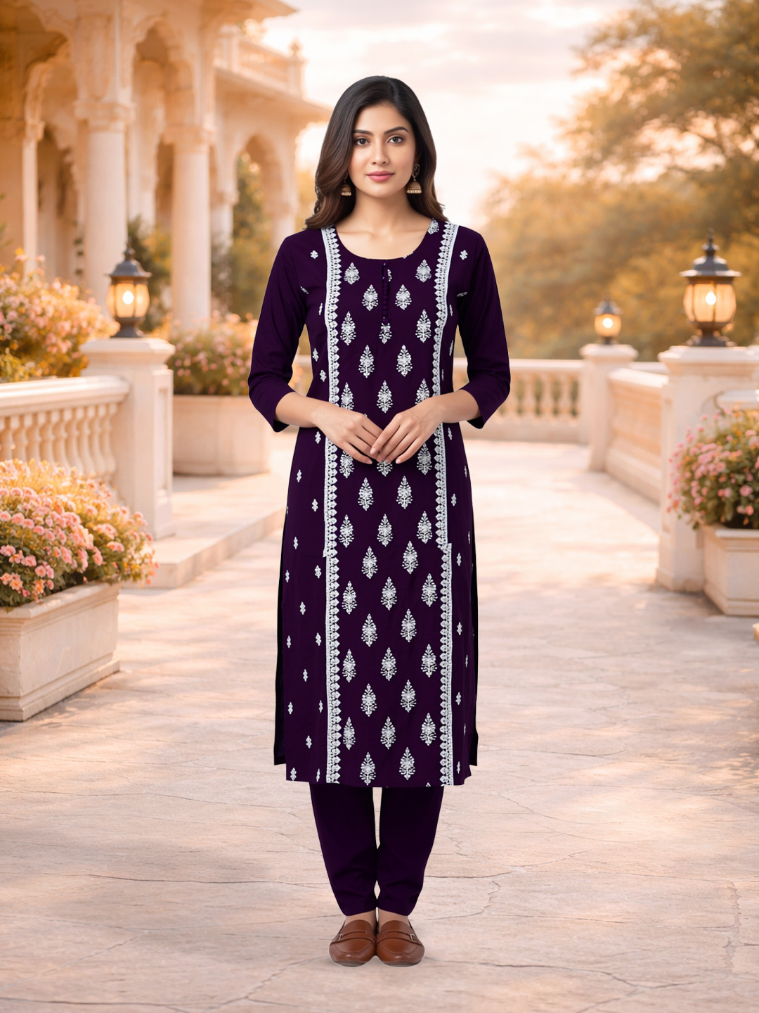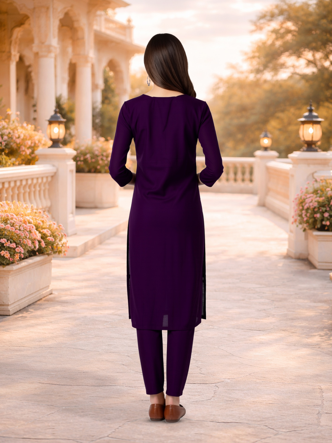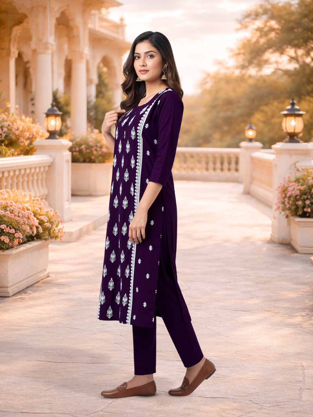 Celebrate elegance with this stunning purple ethnic set that blends traditional craftsmanship with modern design. The intricate embroidery enhances its charm, while the soft fabric and straight silhouette provide all-day comfort and a flattering fit.