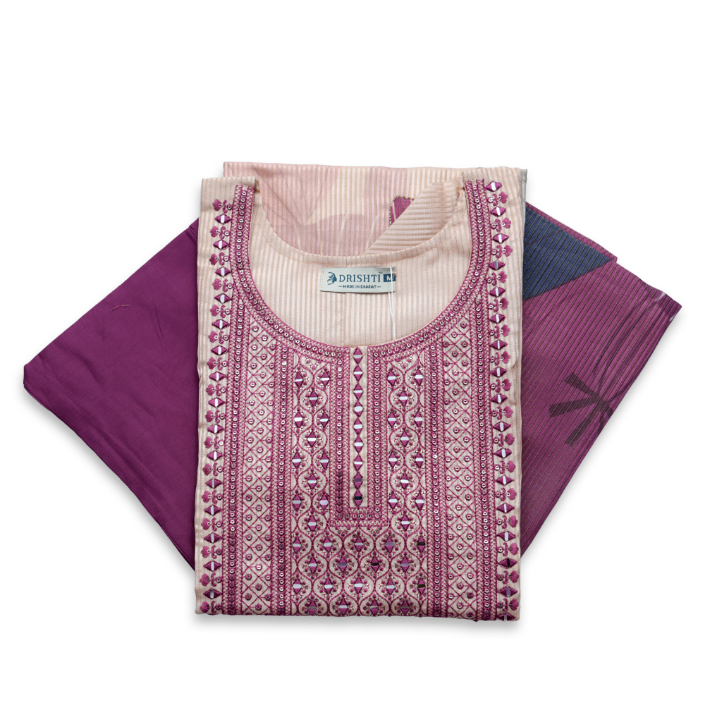 Designed to impress, this 3-piece salwar suit set features delicate mirror work and fine neck embroidery that exudes elegance. The soft, breathable fabric ensures comfort throughout the day, while the straight-fit silhouette offers a flattering and modern look.