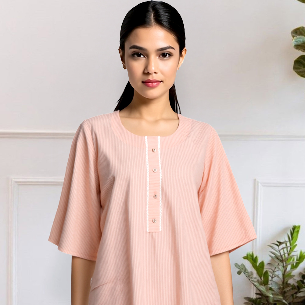 The soft blush tone of the kurta adds a serene, feminine touch to this ensemble. This gentle shade exudes elegance and grace, making it ideal for both casual outings and semi-formal events. The subtle color adds a refreshing, youthful vibe while maintaining a sense of sophistication.