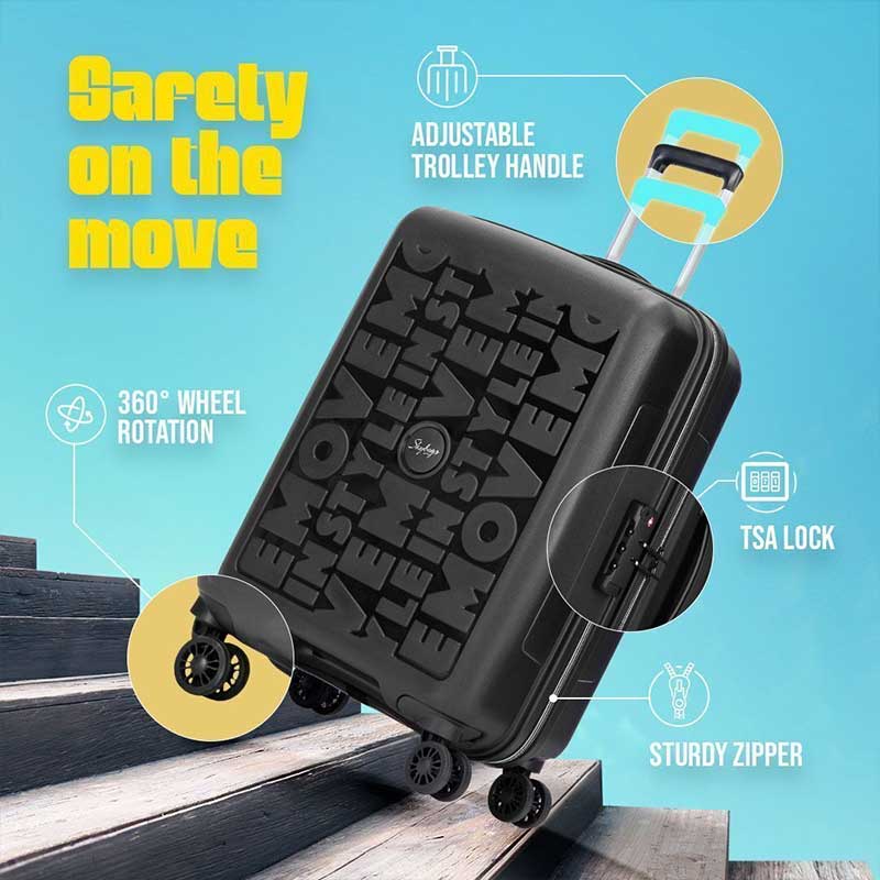 Made from high-quality polypropylene (PP) material, the hard shell provides durability without compromising on style. The sleek jet black finish ensures you travel in timeless elegance.