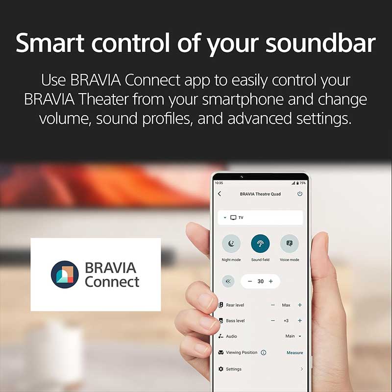With built-in Bluetooth, you can effortlessly stream music, podcasts, and more from your smartphone, tablet, or other Bluetooth-enabled devices directly to your soundbar. Plus, the Bravia Core App provides easy access to high-quality streaming content, giving you an enhanced entertainment experience when paired with compatible Sony Bravia TVs.