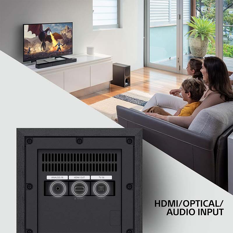 HDMI ARC lets you connect to compatible TVs with a single cable, reducing cable clutter. TV not compatible with HDMI ARC? Enjoy high quality sound for movies and more when you connect to the optical input. If HDMI ARC and the optical input aren't an option, simply connect your TV using the analogue input.