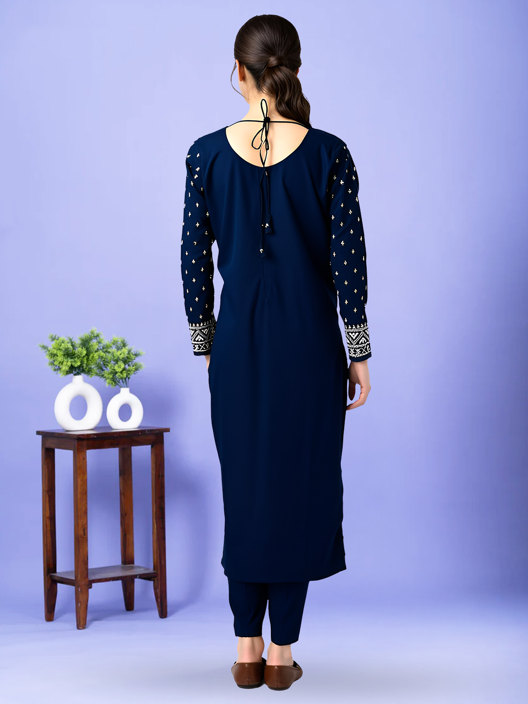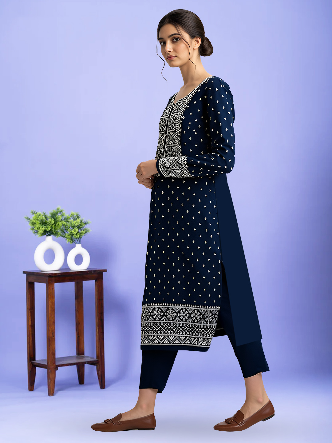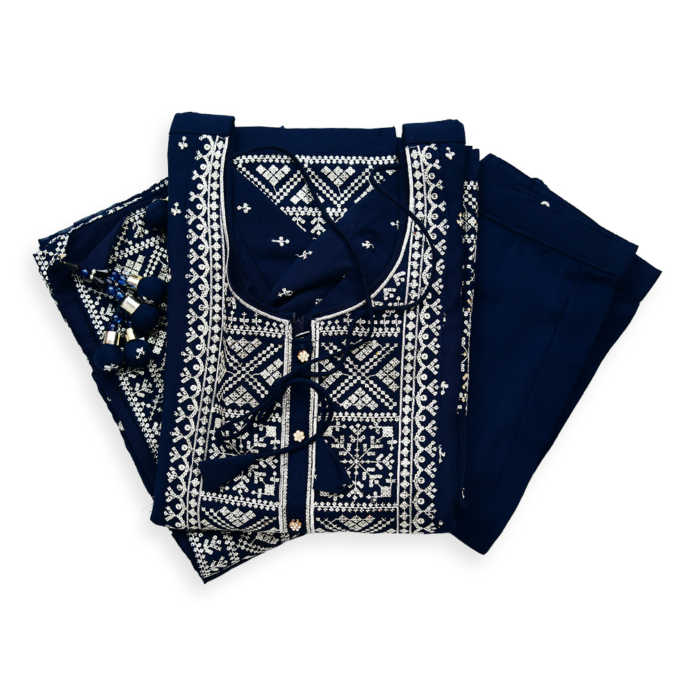 This salwar suit set beautifully combines traditional embroidery with a modern, refined aesthetic. Its balanced design makes it suitable for festivals, family functions, and special occasions.
